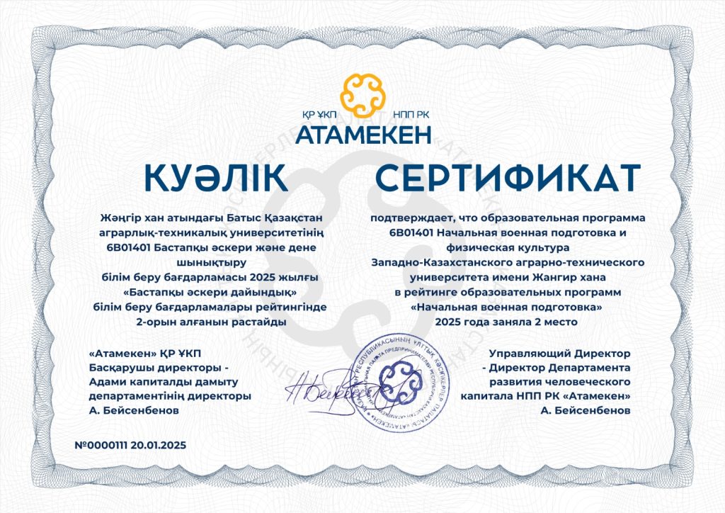 Научные проекты ЗКАТУ имени Жангир хана