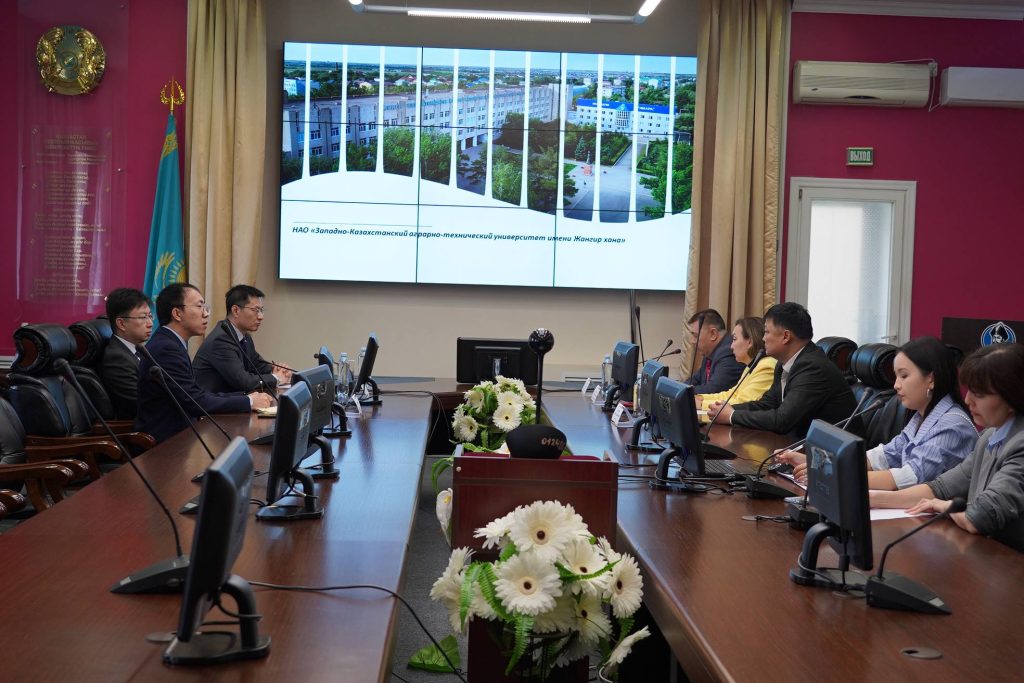 Шетелдік делегацияны қабылдаған университеттің оқу жұмыстары жөніндегі проректоры Нұркен Губашев ЖОО-ның Қытай мемлекетімен, соның ішінде қытайлық университеттермен әріптестік байланыста екенін атап өтті. ҚХР-ның Ақтөбе қаласындағы елшілігінің бас елшісі Го Юй Жәңгір хан университетін еліміздегі беделді әрі жетекші жоғары оқу орындарының бірі ретінде танитынын айтты. БҚАТУ-дың халықаралық ынтымақтастық бөлімінің басшысы Замзагүл Сұлтанова қонақтарға университеттің бүгінгі тынысы, ғылыми әлеуеті, халықаралық байланыстары туралы айтып өтті. Соның ішінде Жәңгір хан университеті Қытайдағы Тарим университетімен, Солтүстік-батыс ауыл шаруашылық және орман шаруашылығы университетімен, Қытай мұнай университетімен және Бейжің орман шаруашылығы университетімен әріптестік байланыста екенін мәлімдеді.